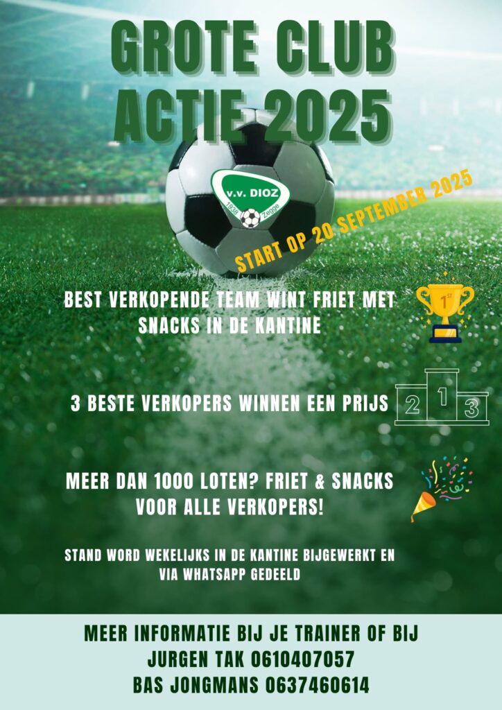 Dit jaar doet DIOZ mee aan de Grote Club Actie 2025. Een prachtige kans om onze club te steunen!